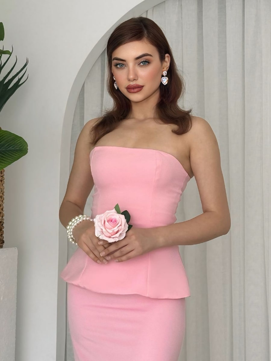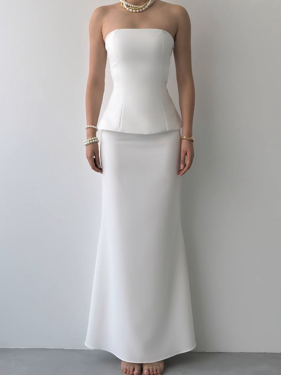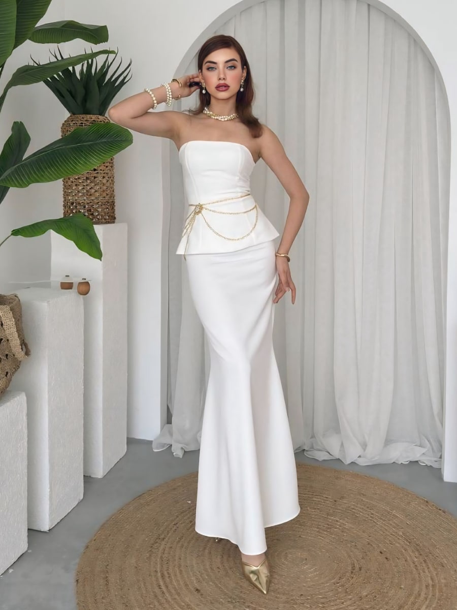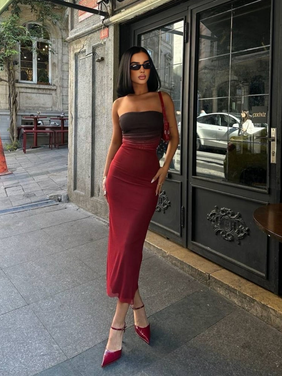 Two-Tone Glitter Ombre Strapless Slit Front Gown