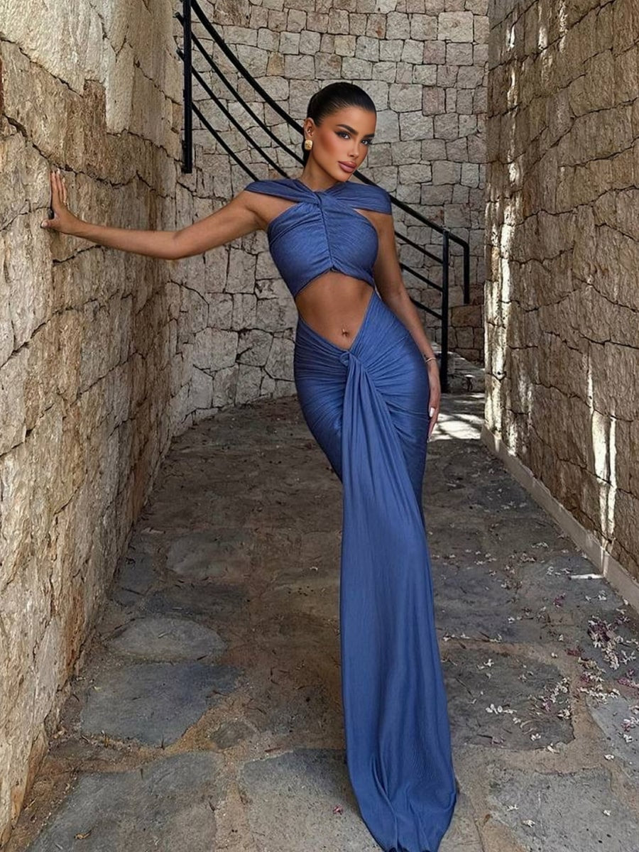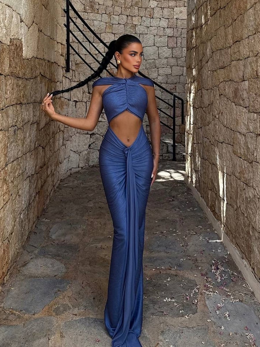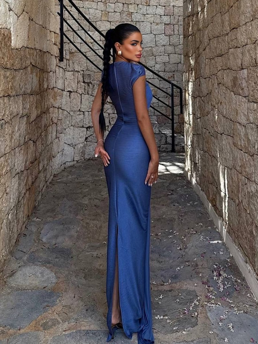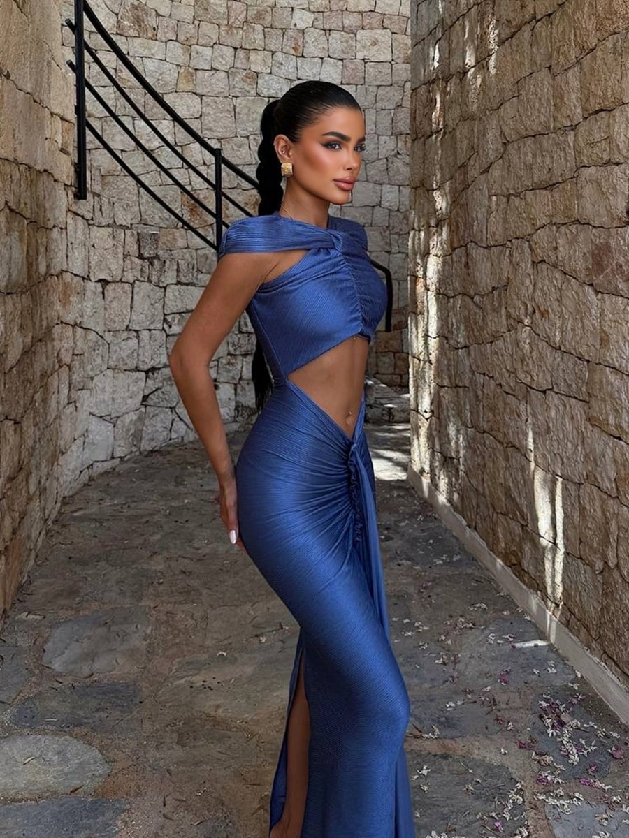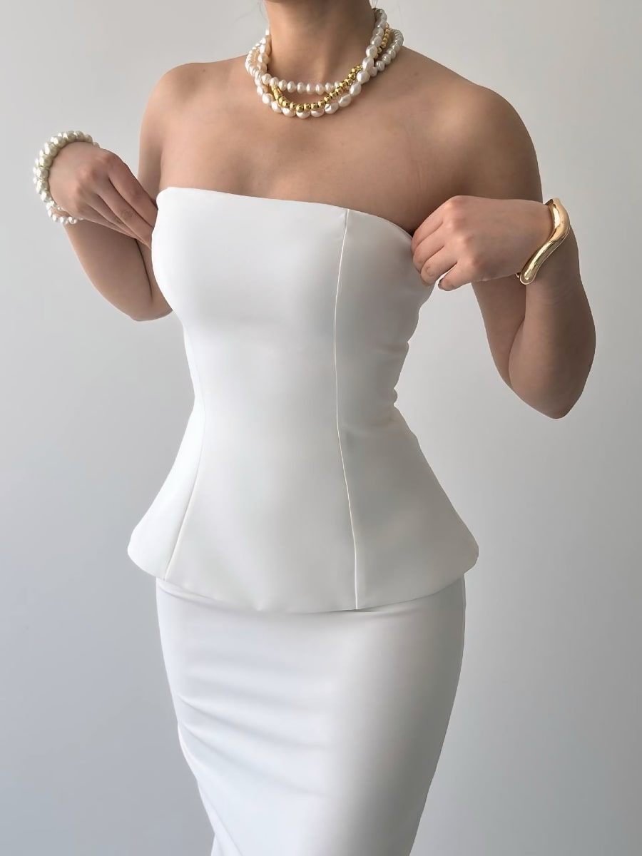 Two-Tone Glitter Ombre Strapless Slit Front Gown
