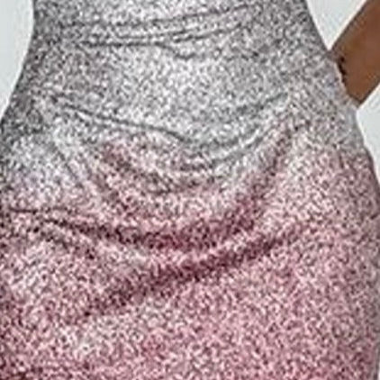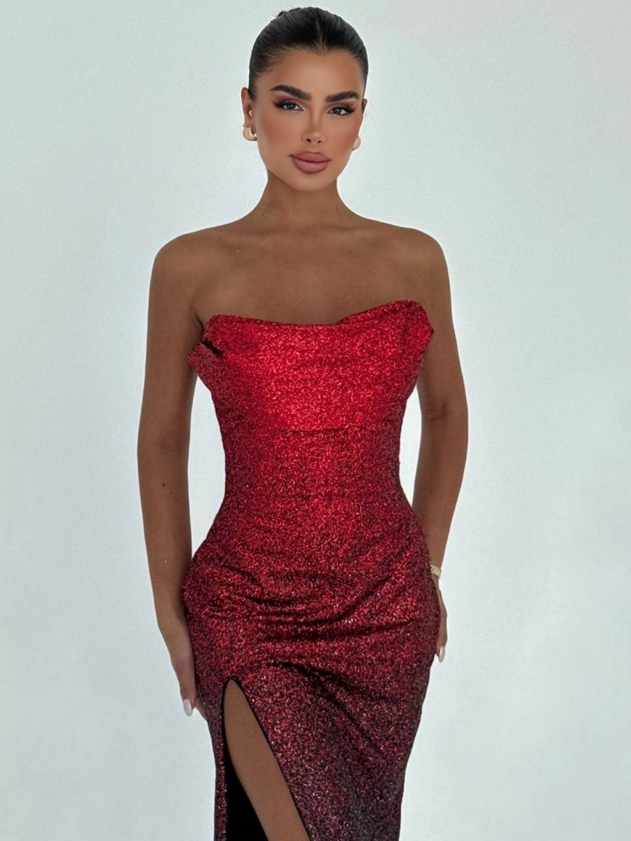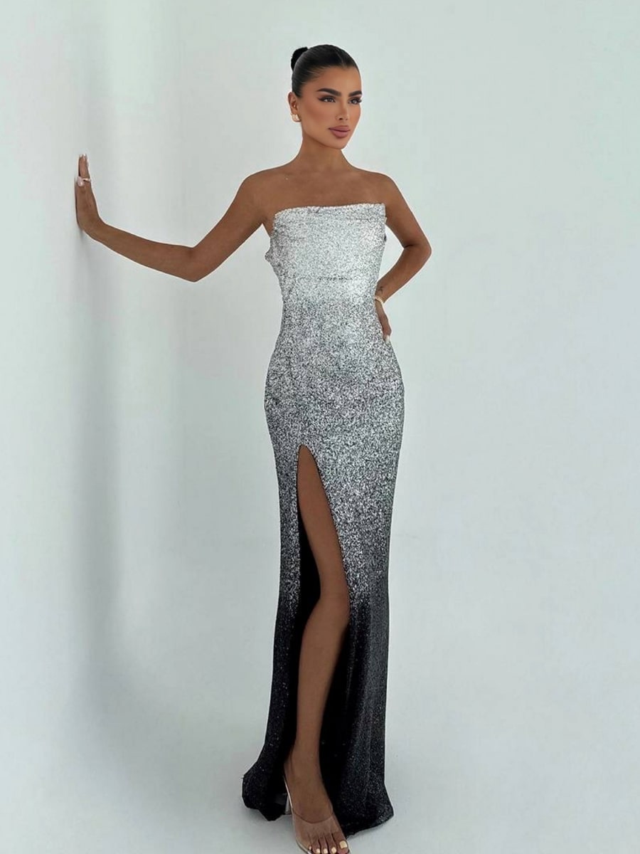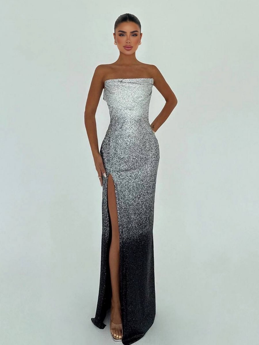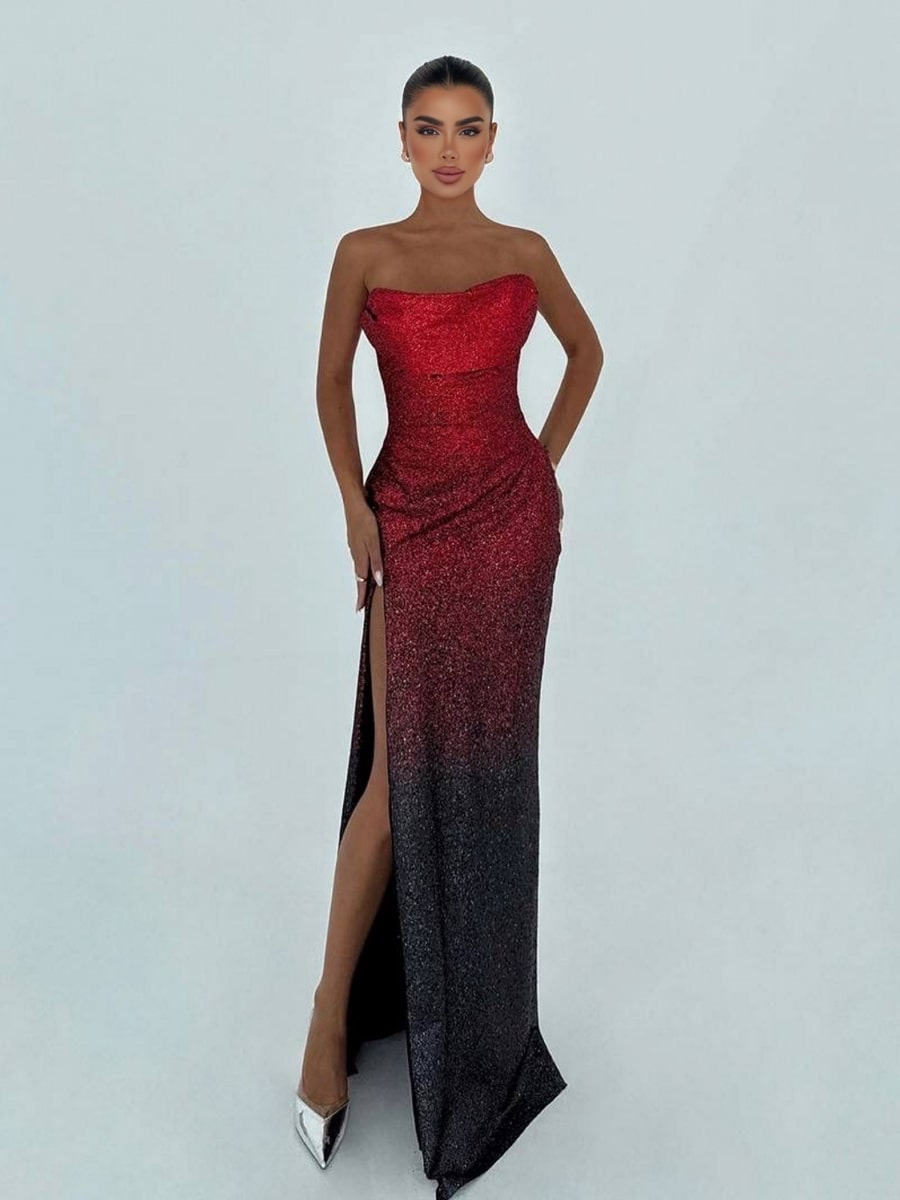 Two-Tone Glitter Ombre Strapless Slit Front Gown