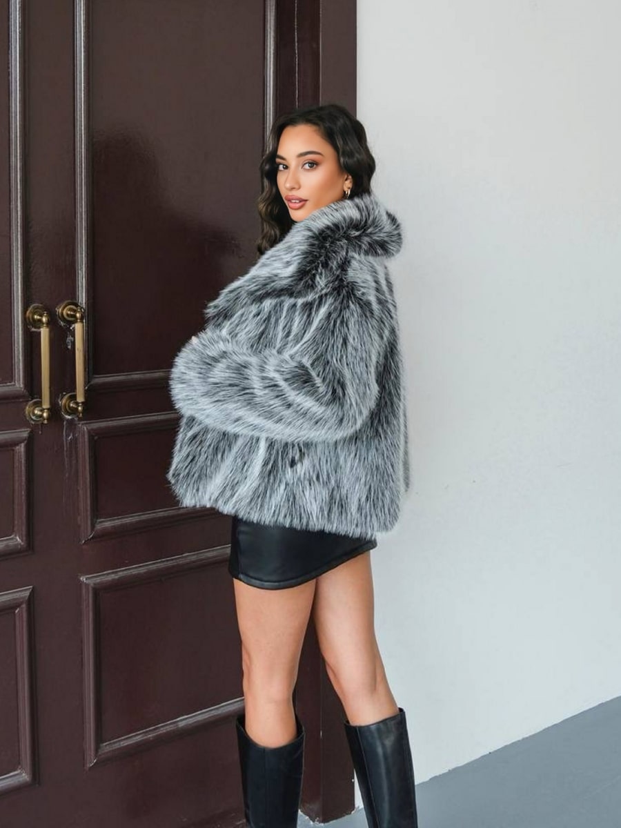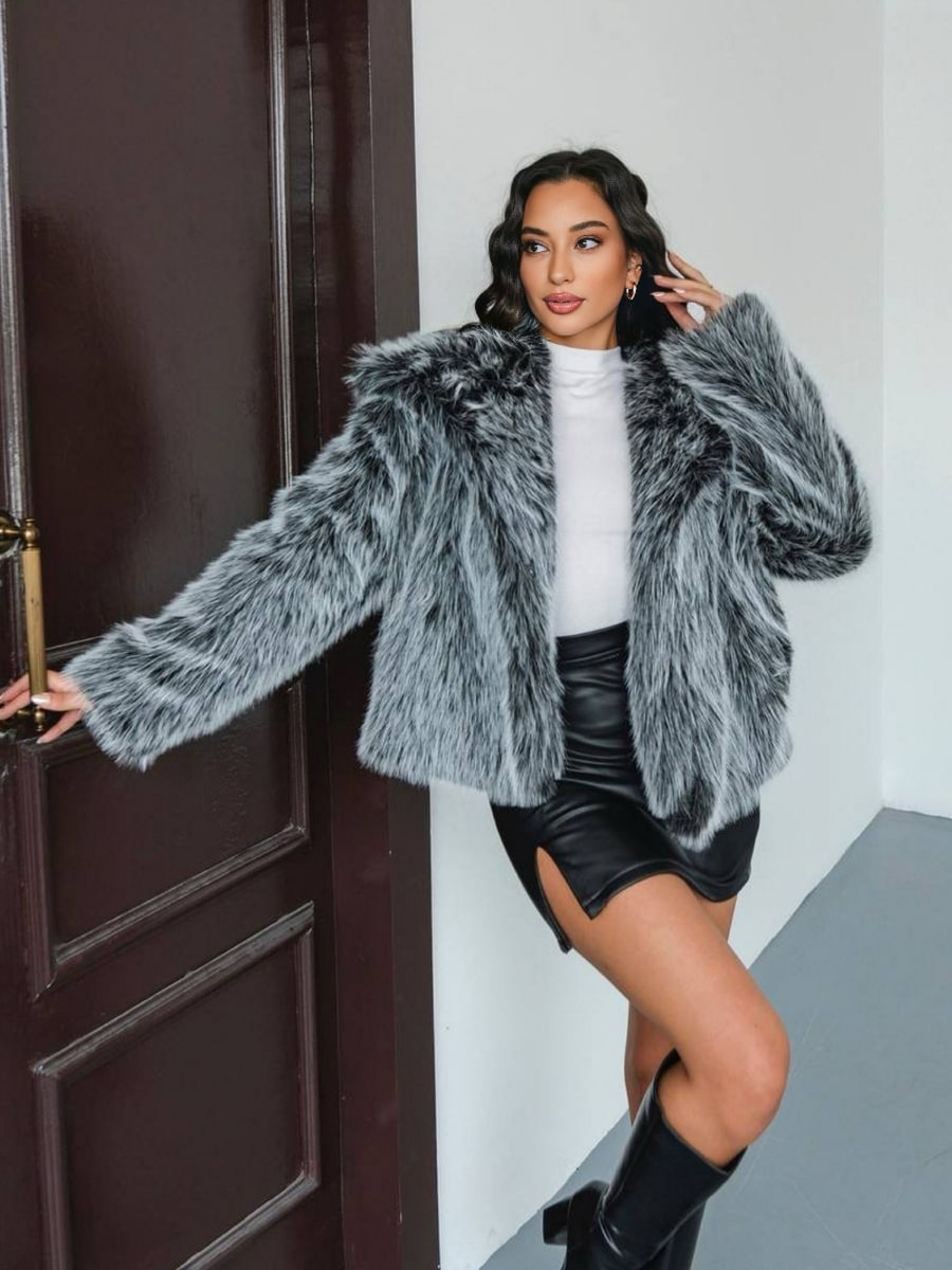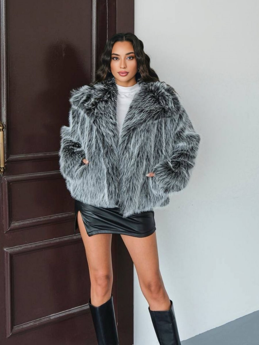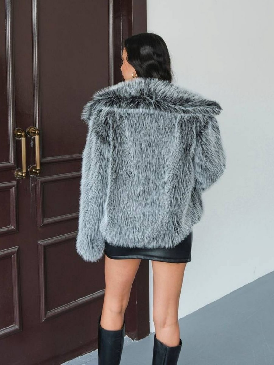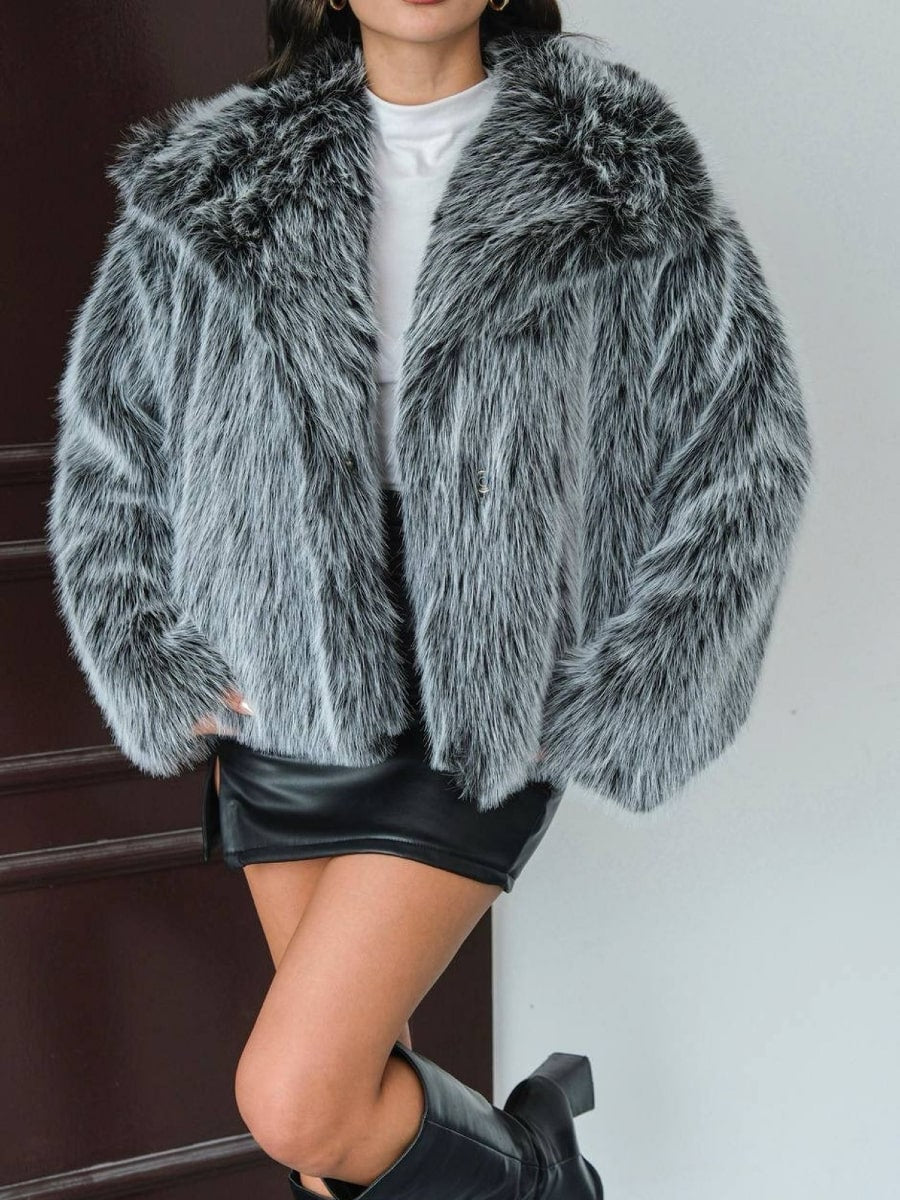 Loose Fit Long Sleeve Open Front Fluffy Thick Jacket