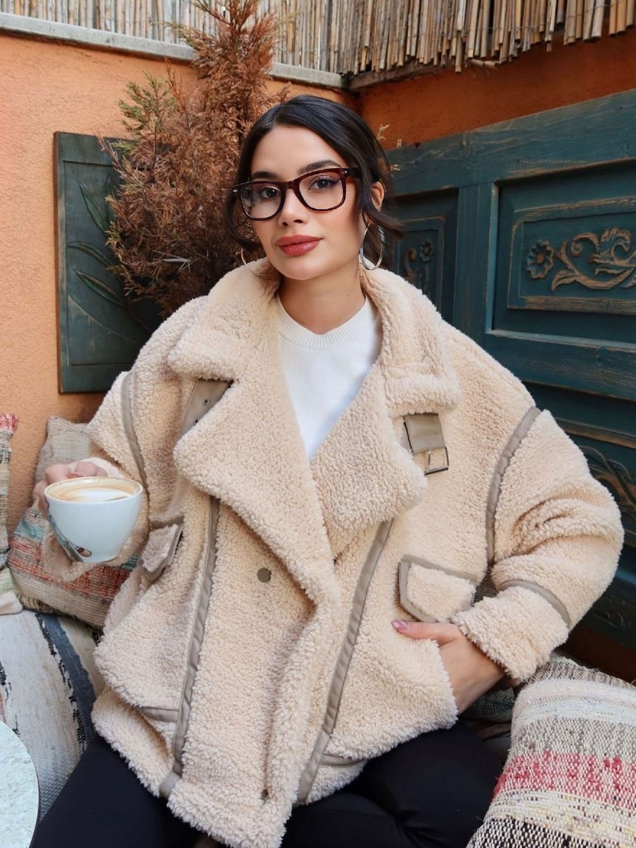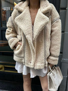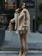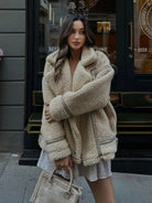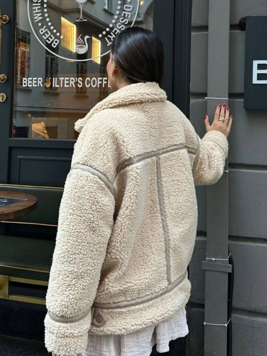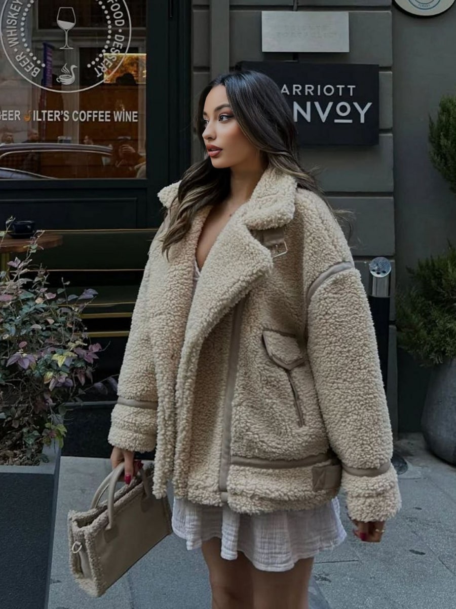 Solid Lapel Collar Drop Shoulder Oversize Teddy Jacket