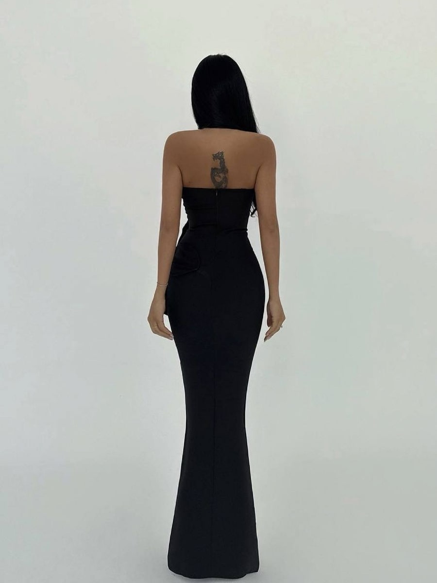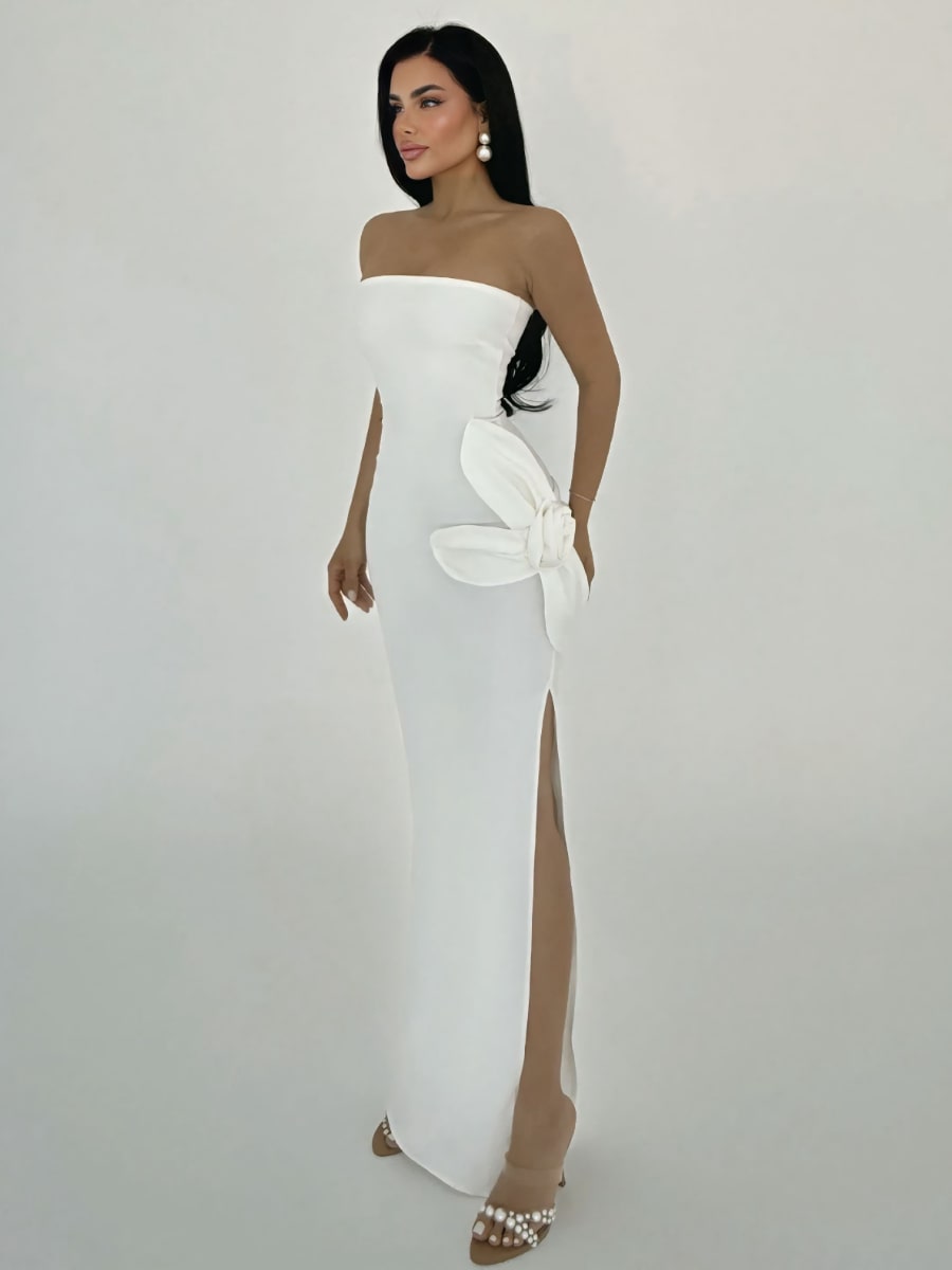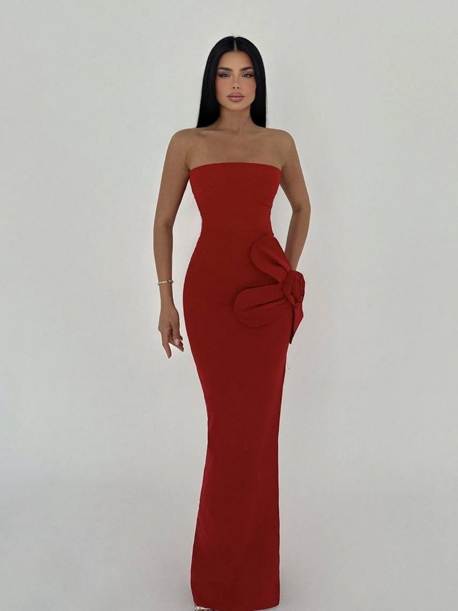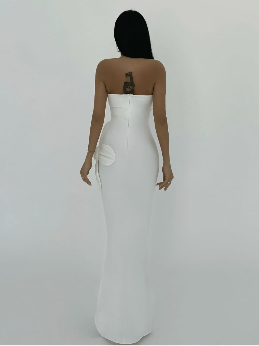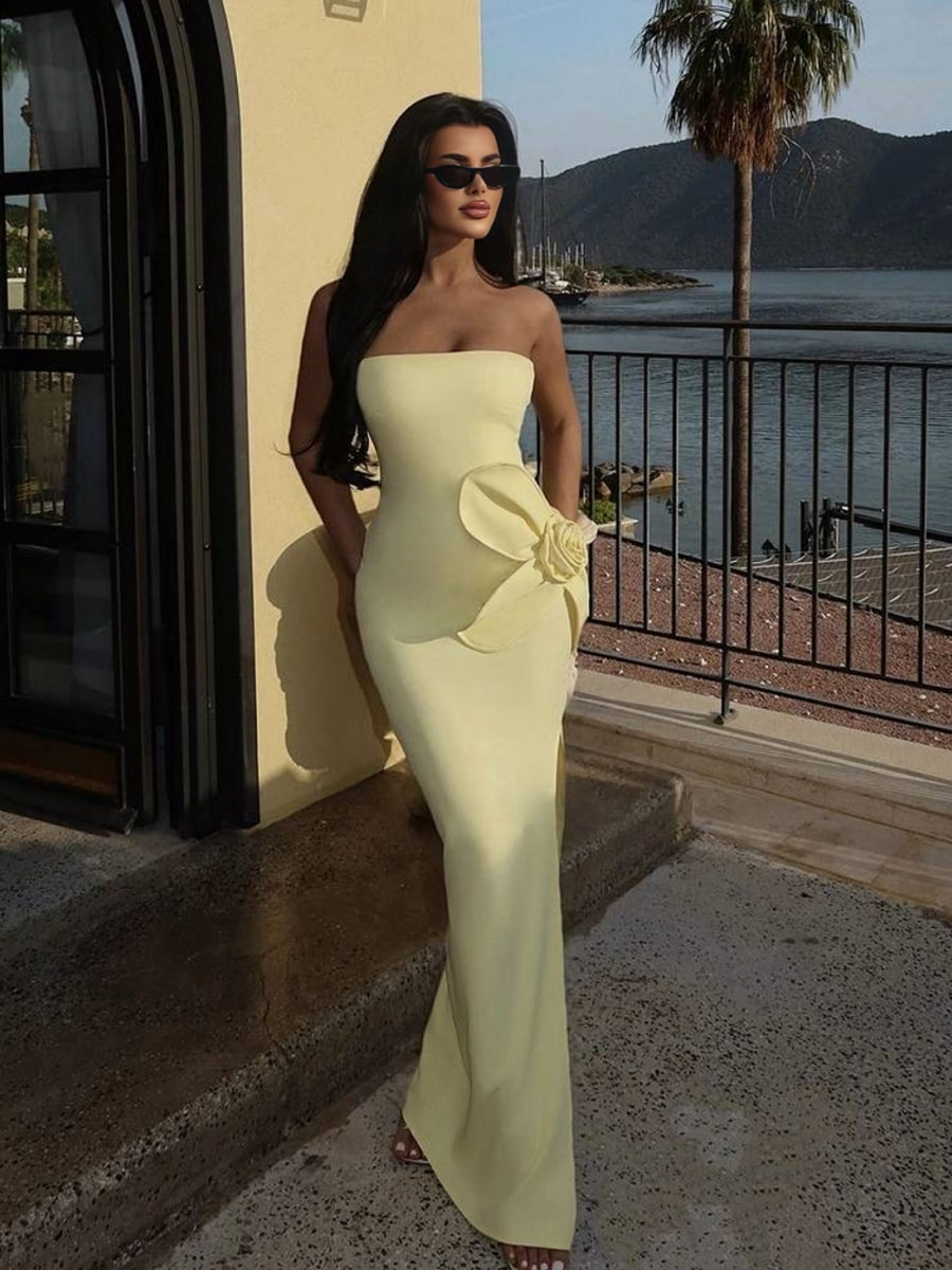 3D Floral Decor Bandeau Bodycon Elegant Dress