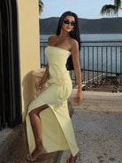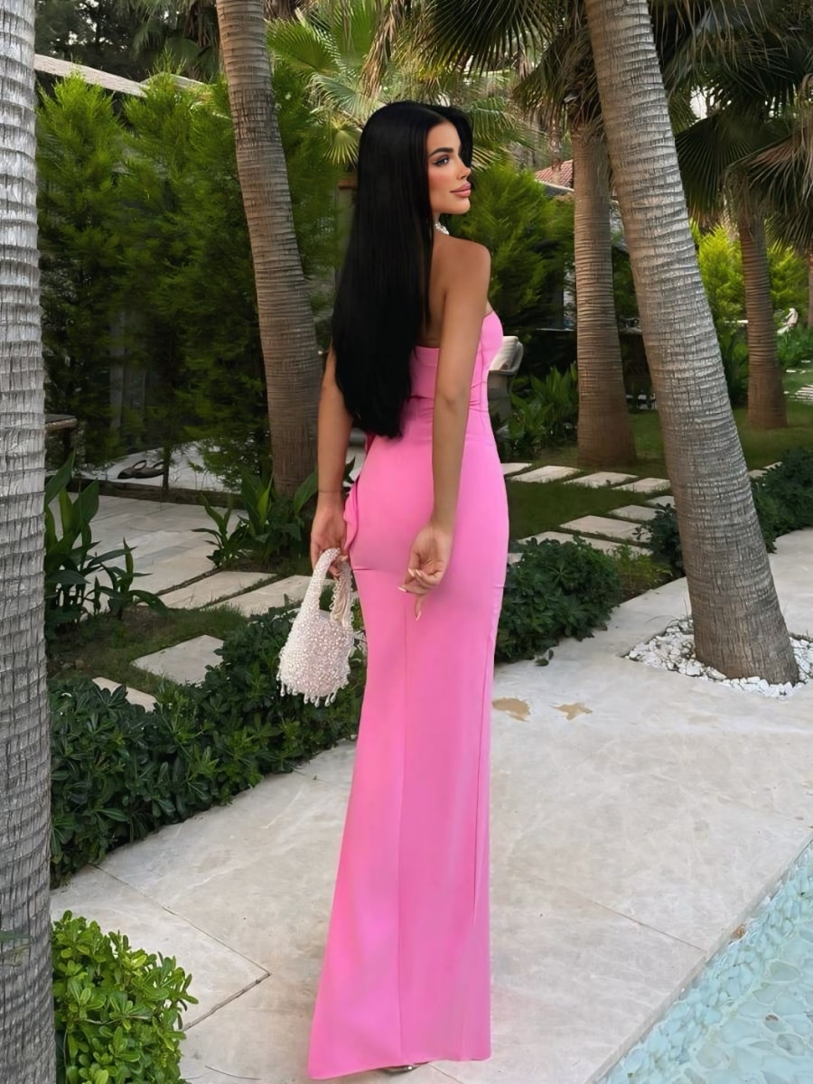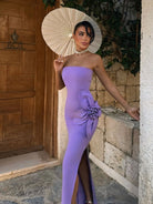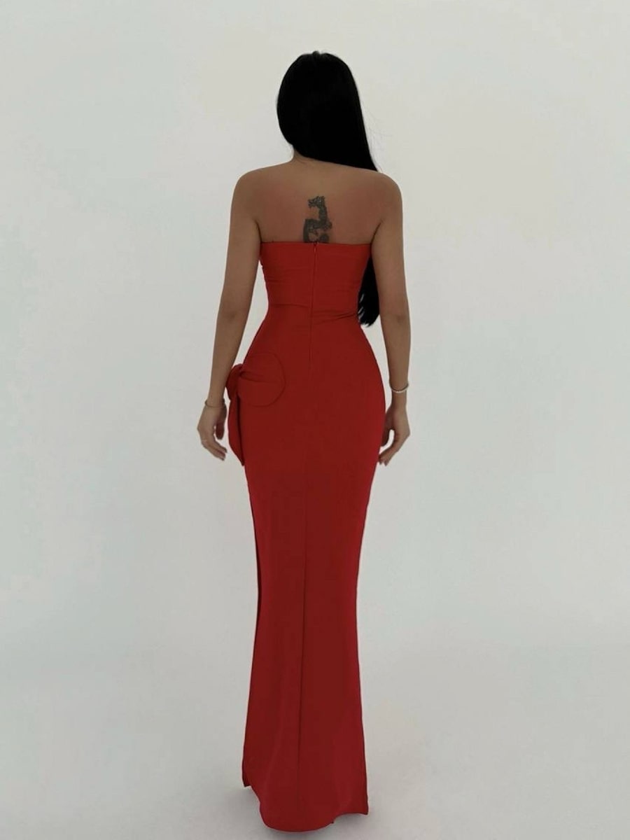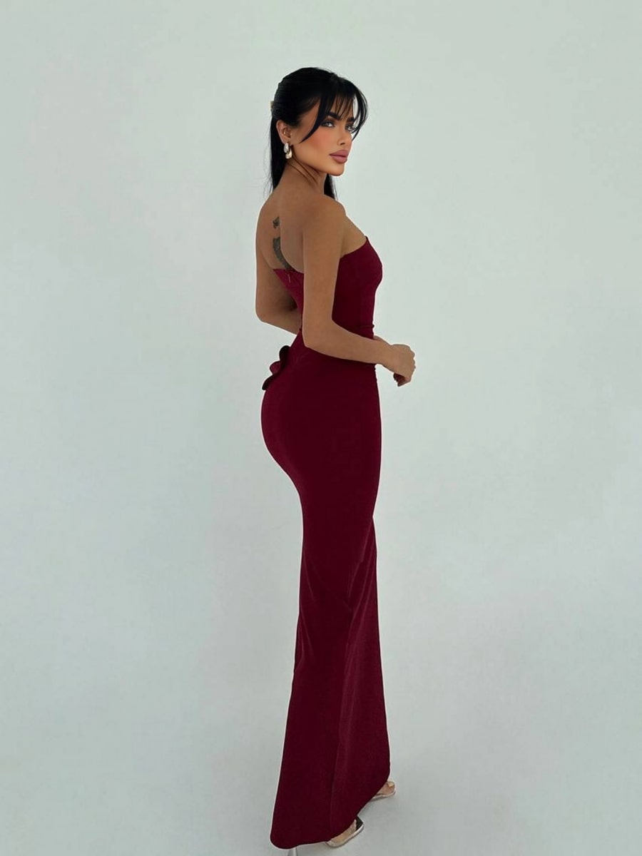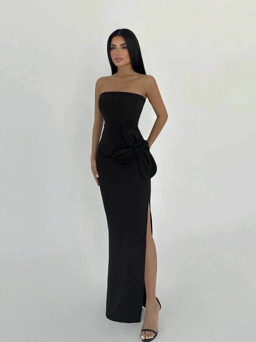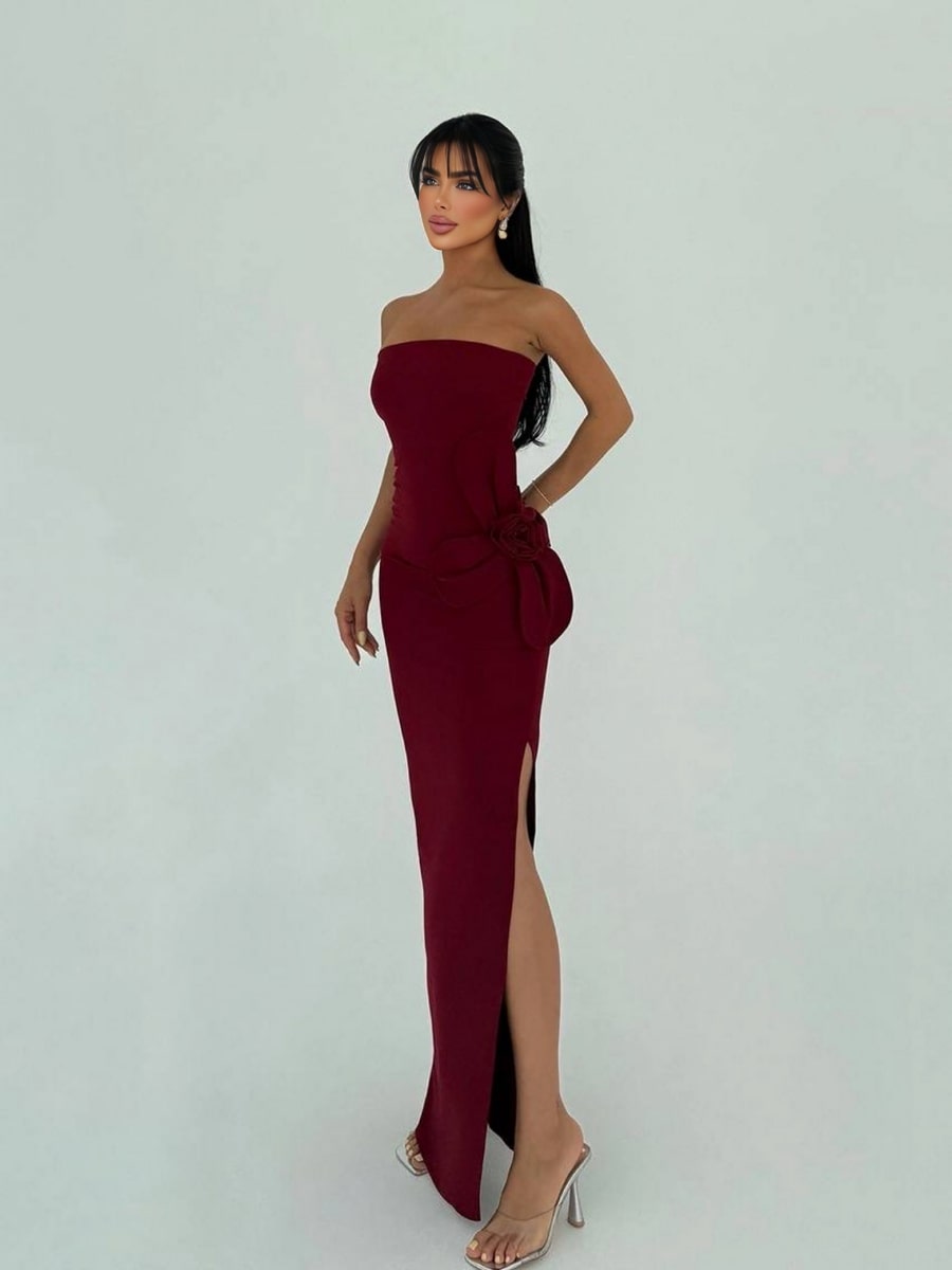 3D Floral Decor Bandeau Bodycon Elegant Dress