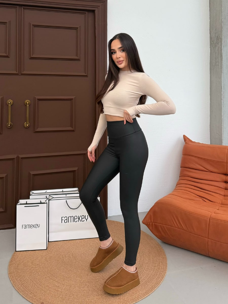 High Waist Faux PU Leather Lined Zara Leggings