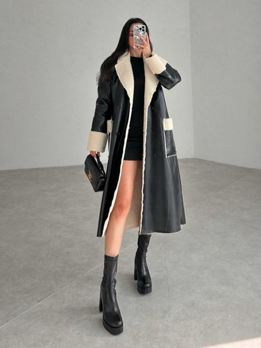 Contrast Trim Long Sleeve Pocket Fluffy Panel Thermal Jacket