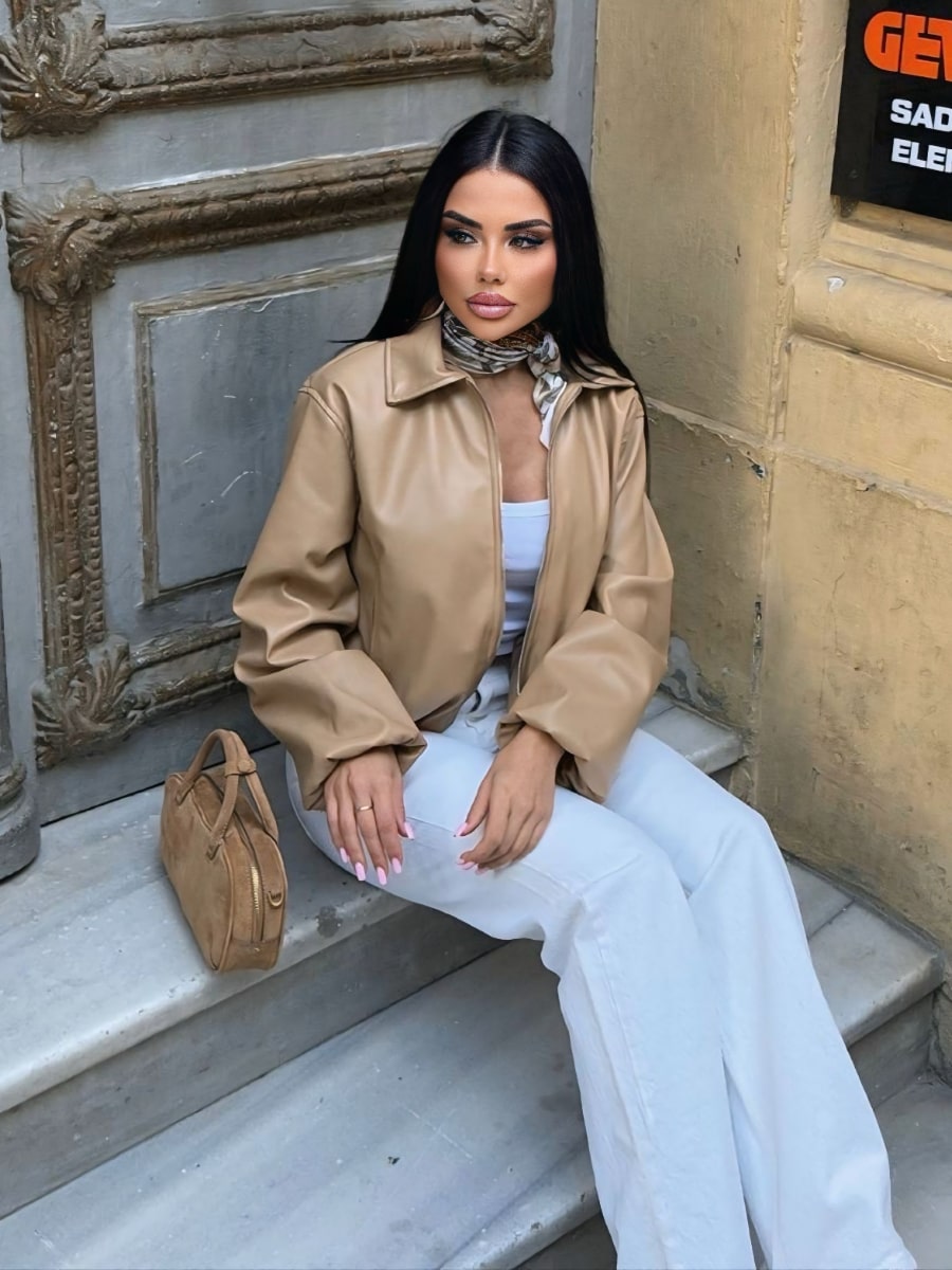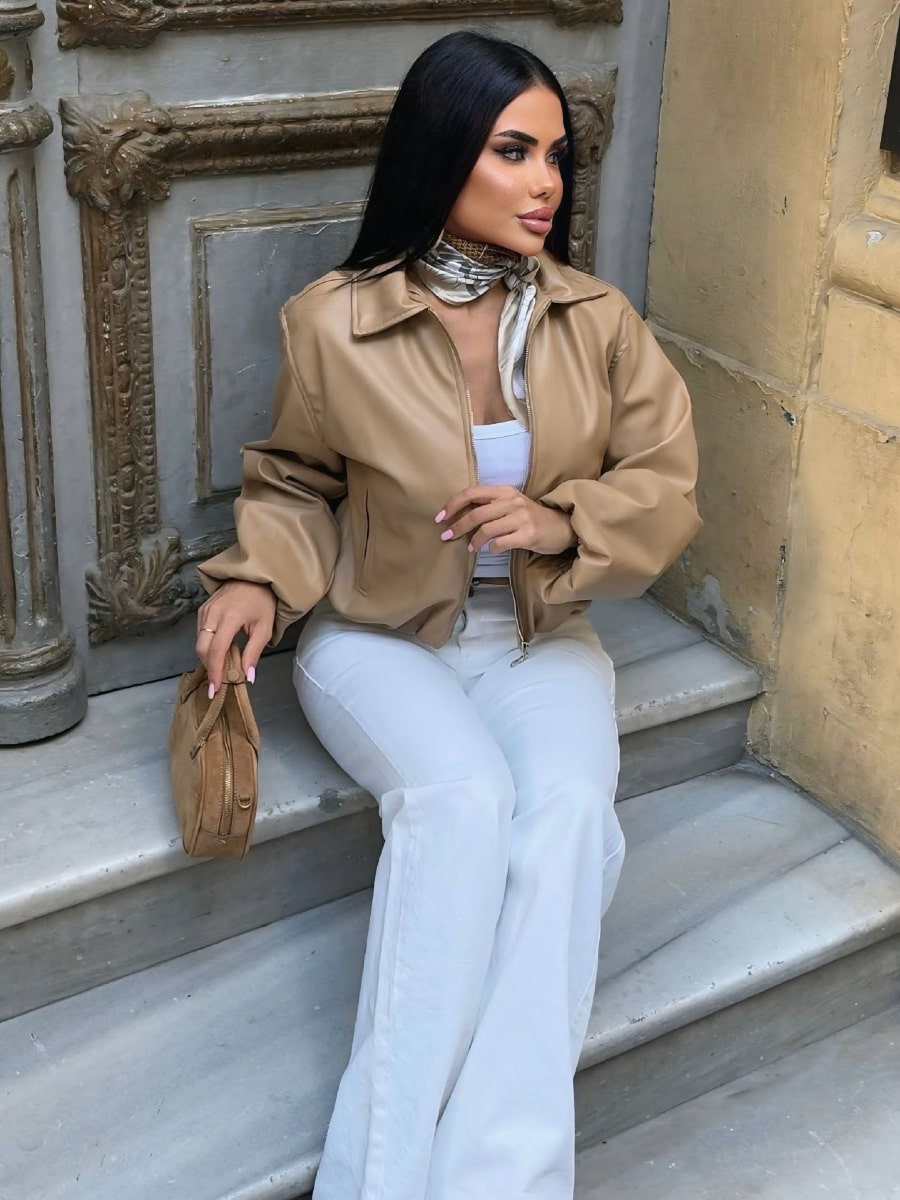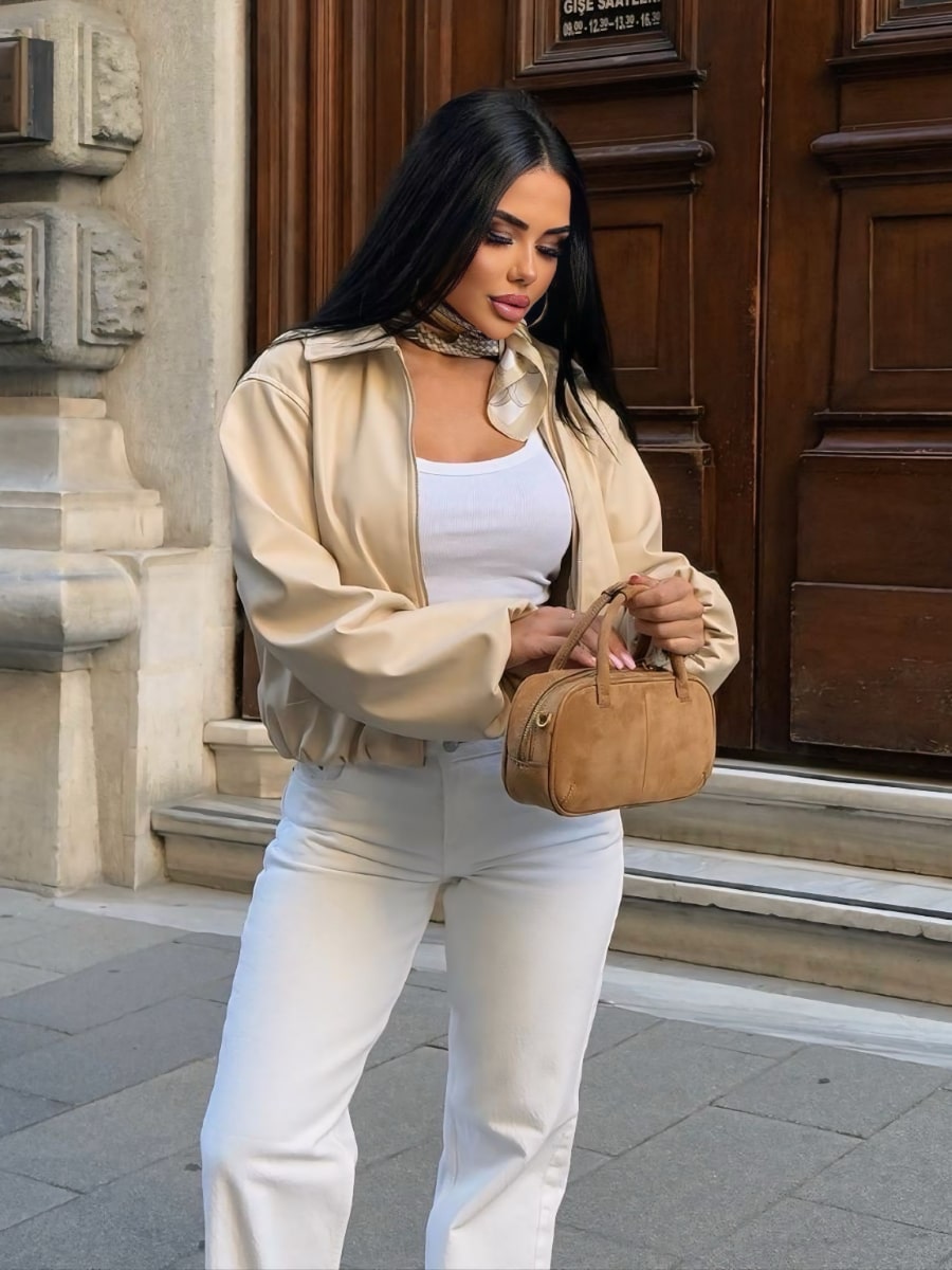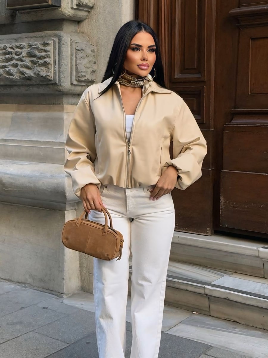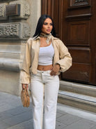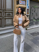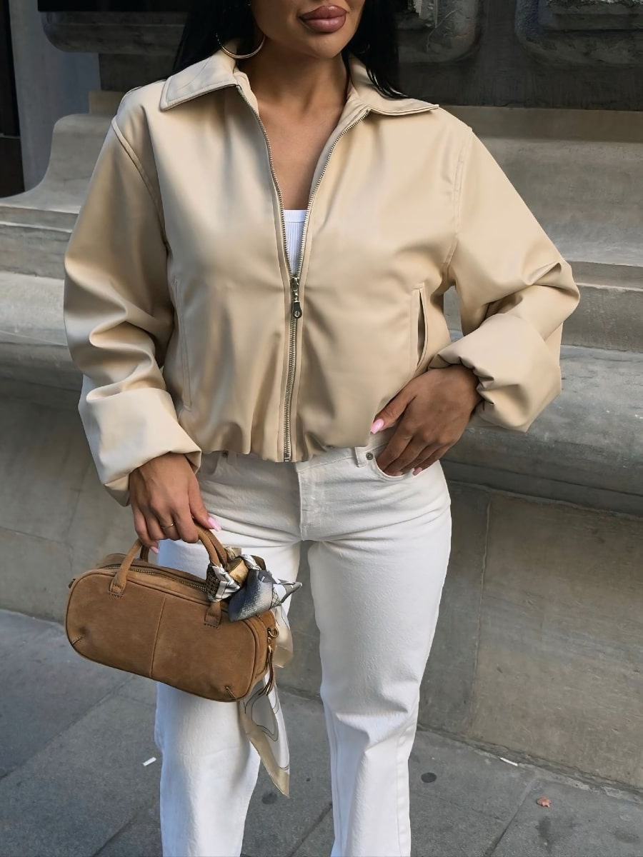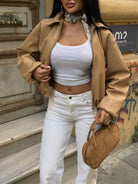 Drop Shoulder Zip Up Crop Bomber Jacket