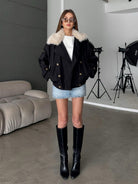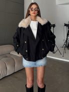 Oversized Double-Breasted Jacket with Faux Fur Collar