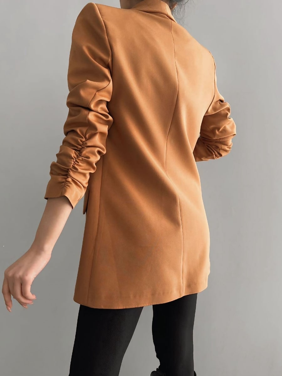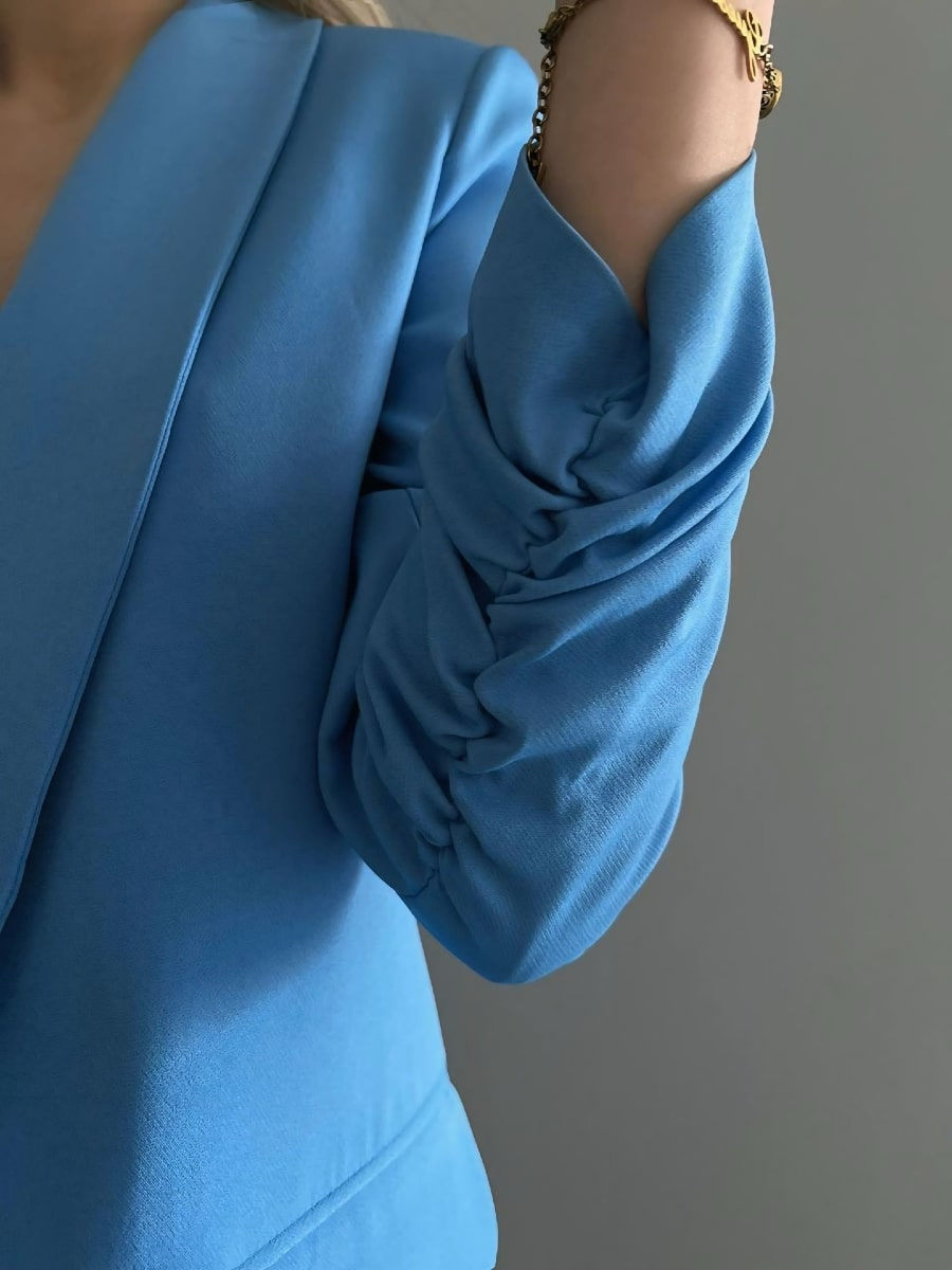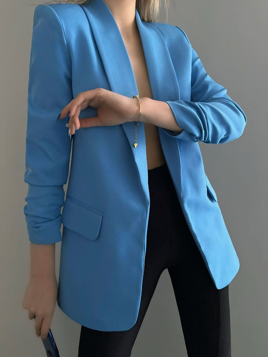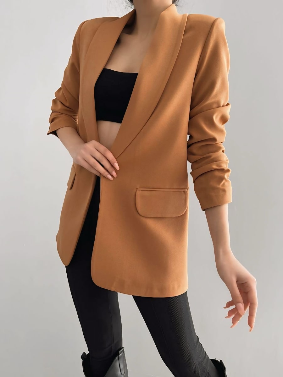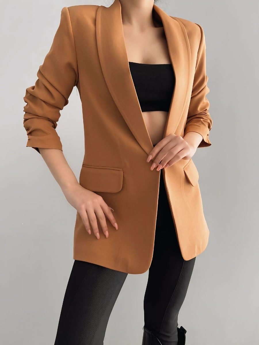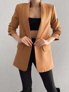 Shawl Collar Gathered Sleeve Flap Detail Blazer