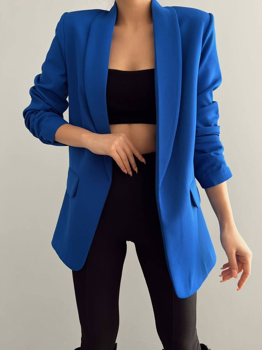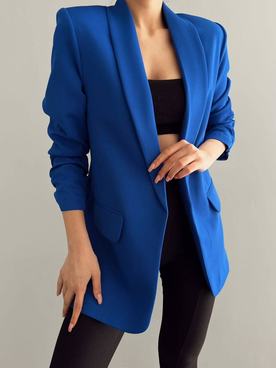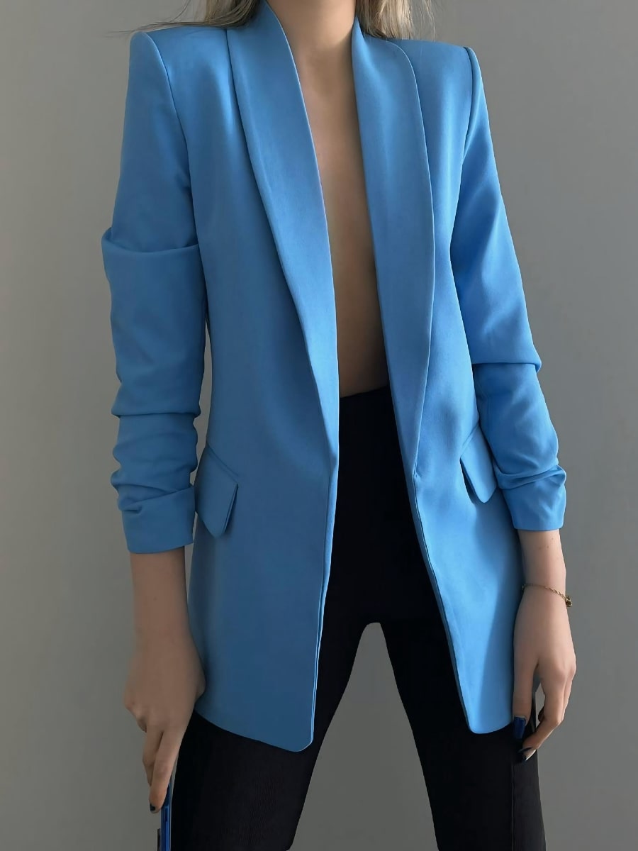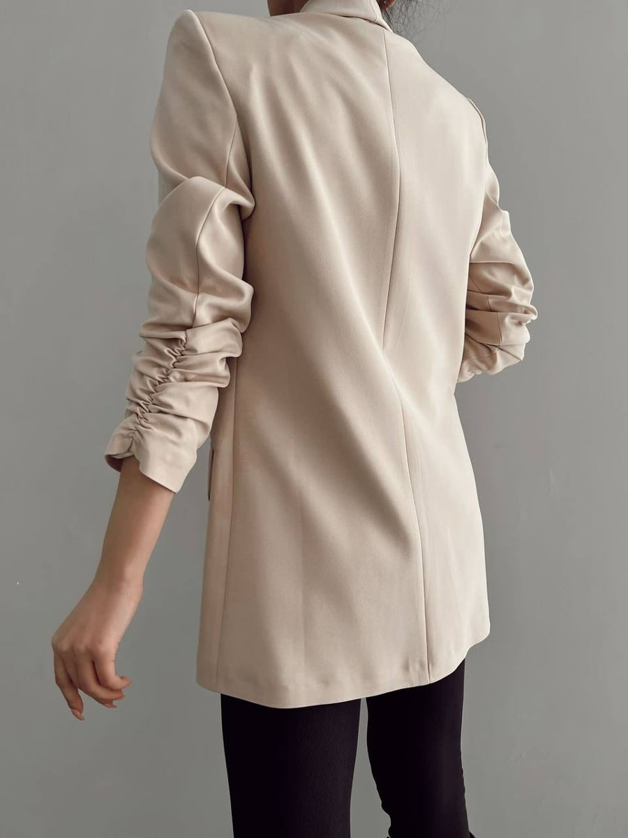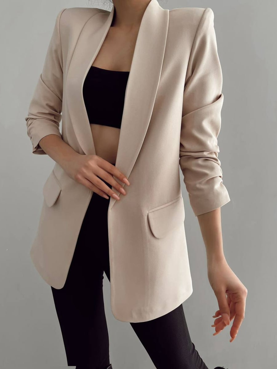 Shawl Collar Gathered Sleeve Flap Detail Blazer