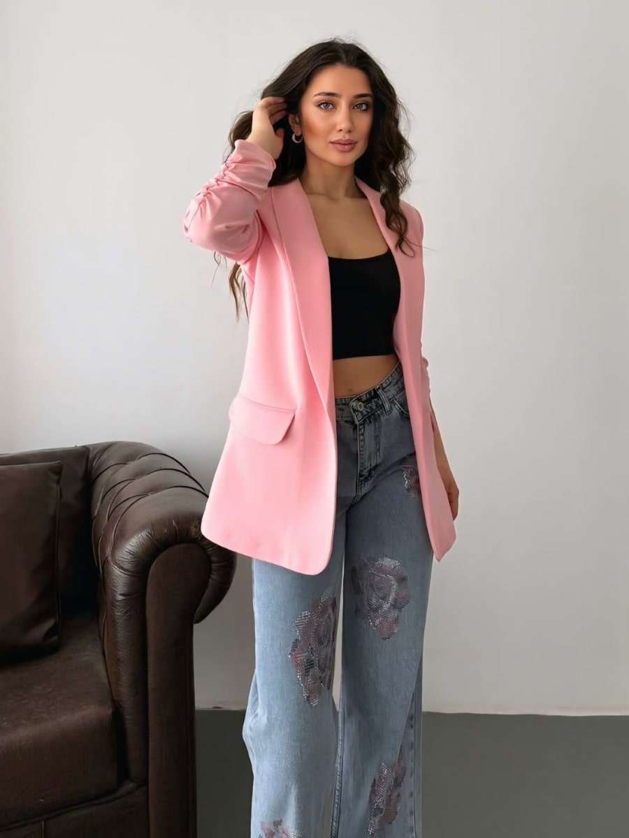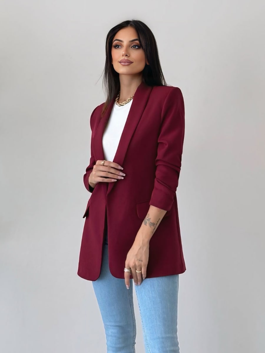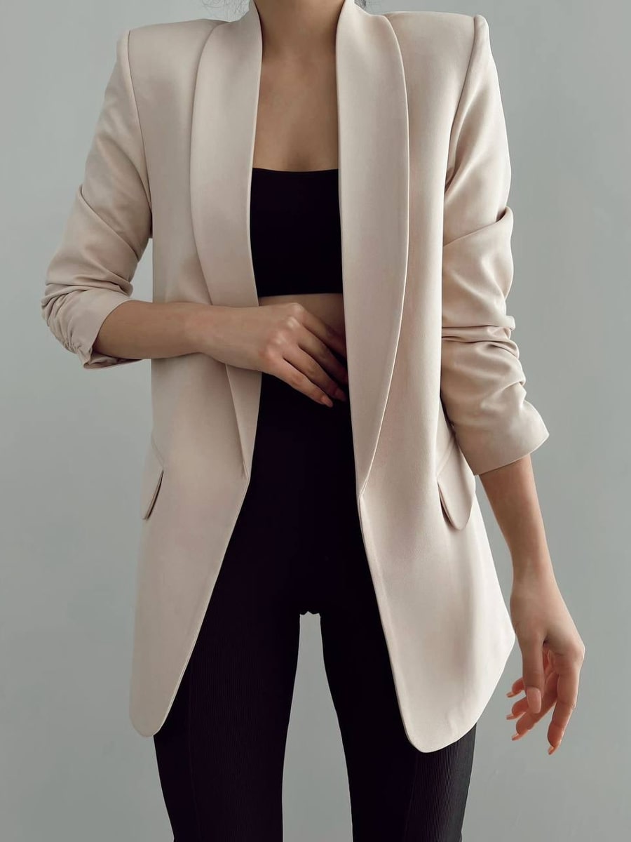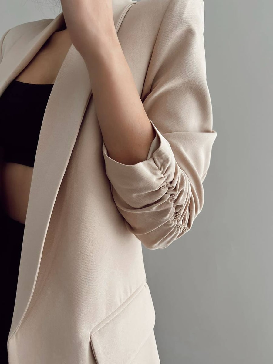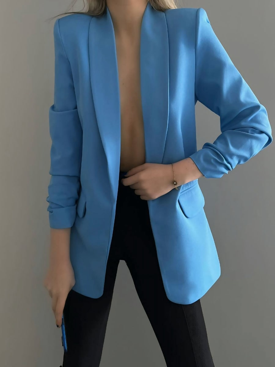 Shawl Collar Gathered Sleeve Flap Detail Blazer