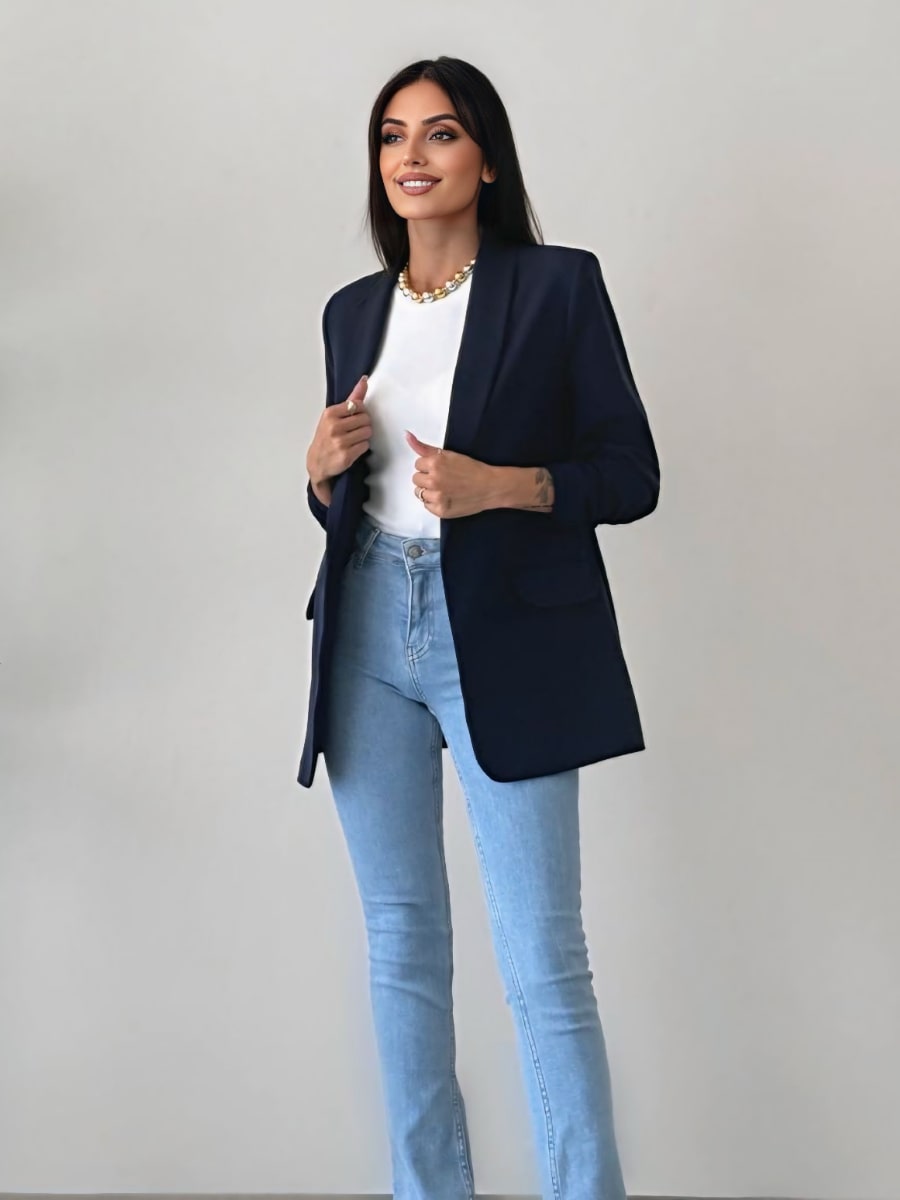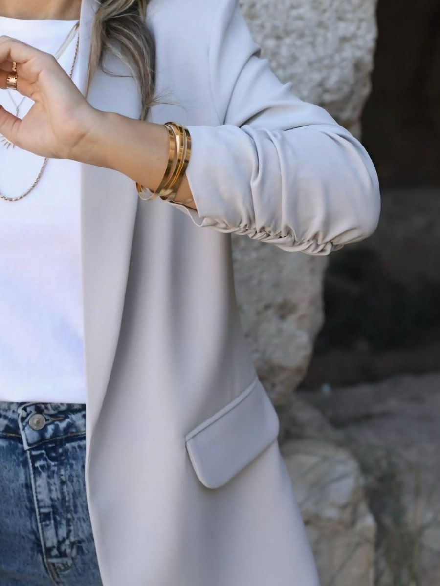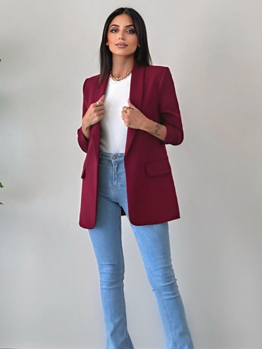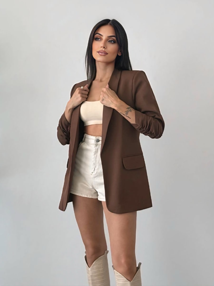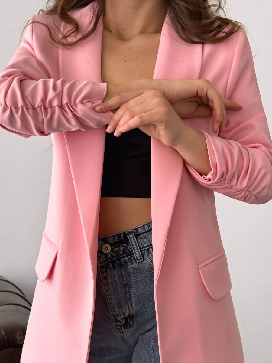 Shawl Collar Gathered Sleeve Flap Detail Blazer