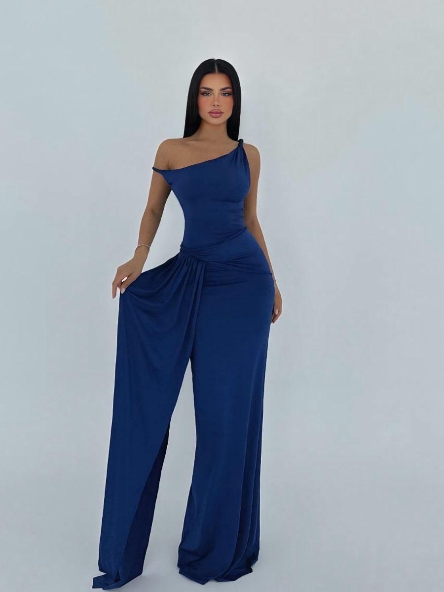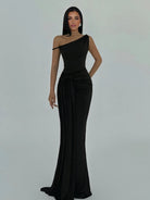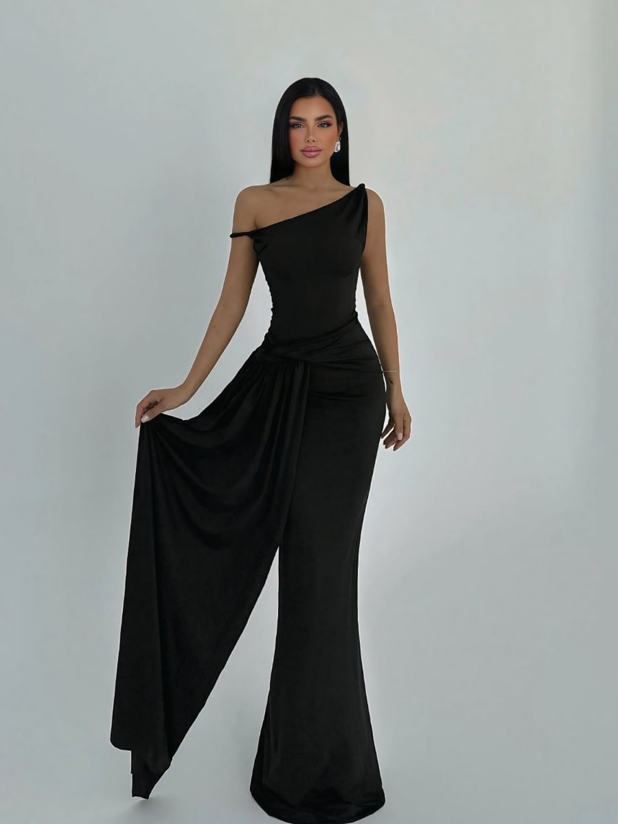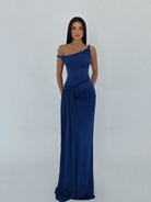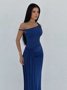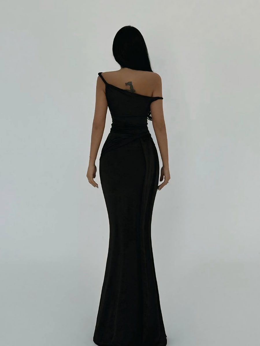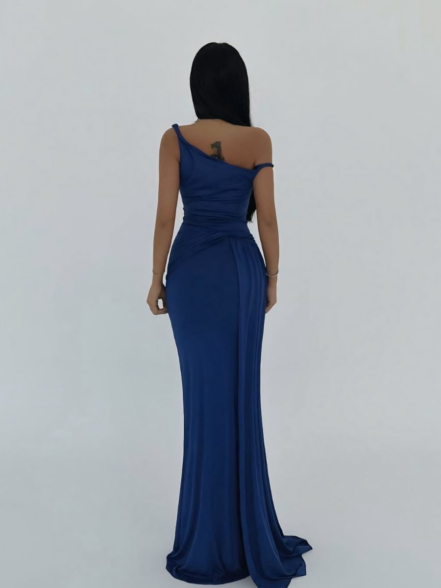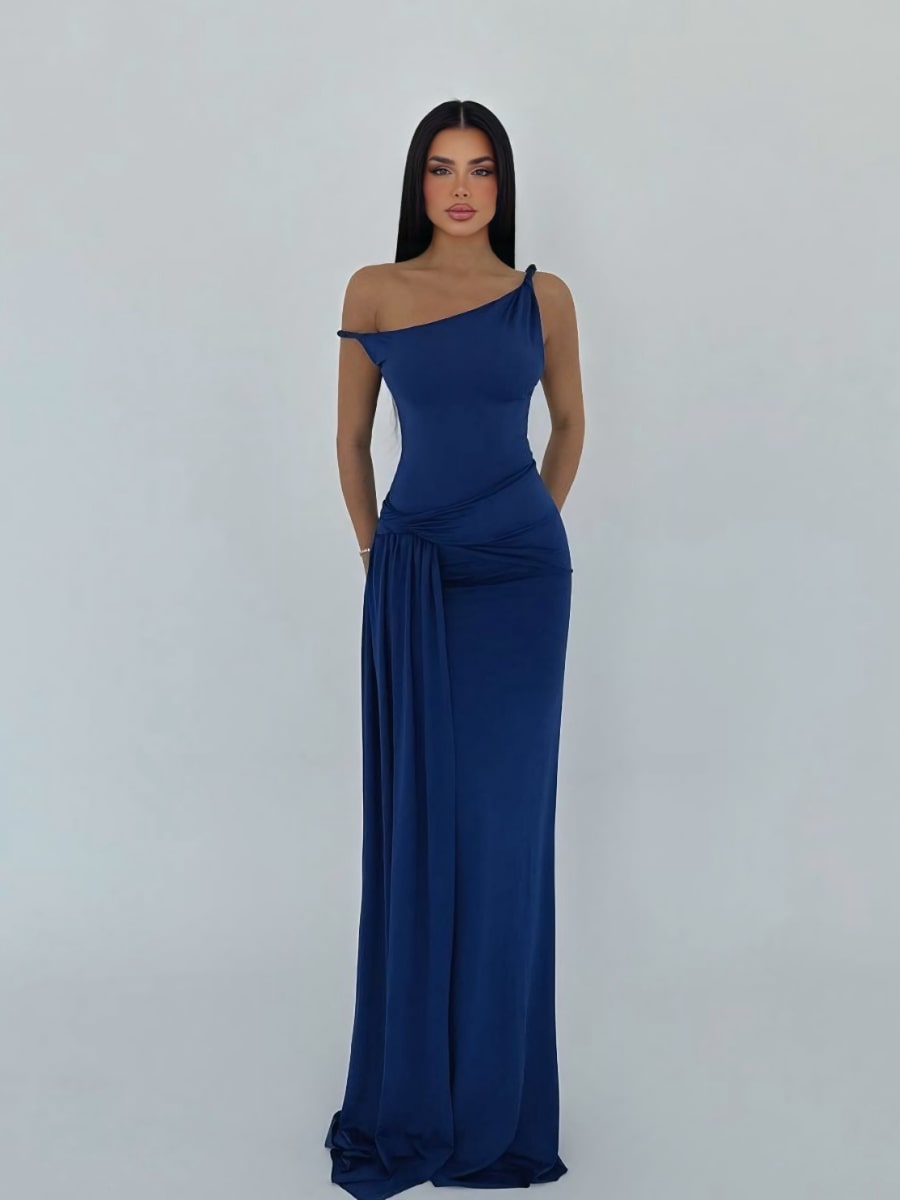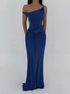 Asymmetrical Neck Sleeveless Draped Bodycon Maxi Dress