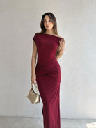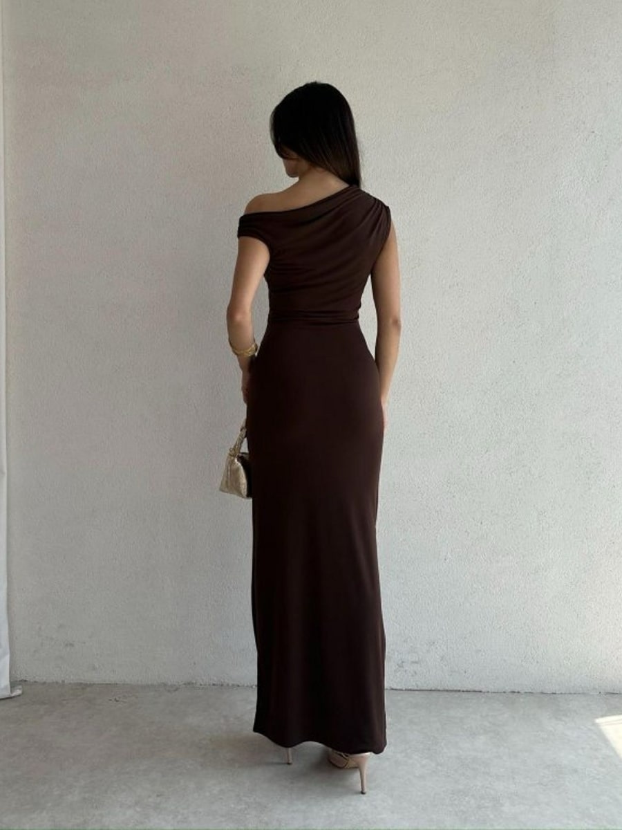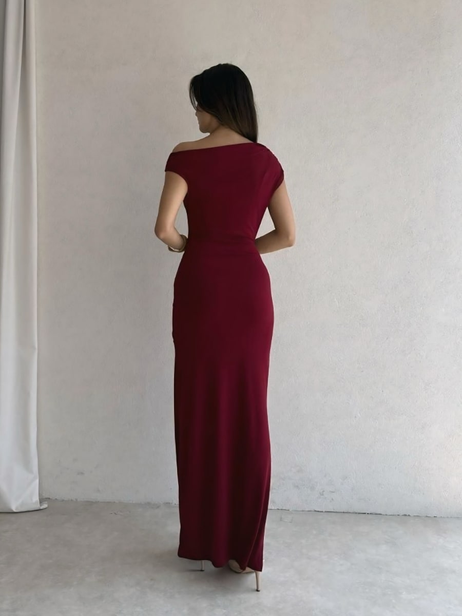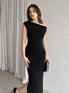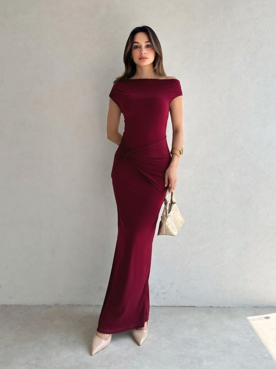 Asymmetrical Neck Twist Waist Decor Bodycon Dress