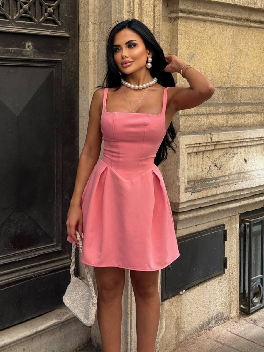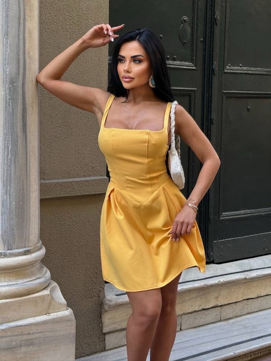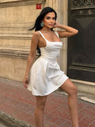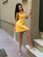 Casual Plain Low-Cut Waist Cinched Mini Short Dress